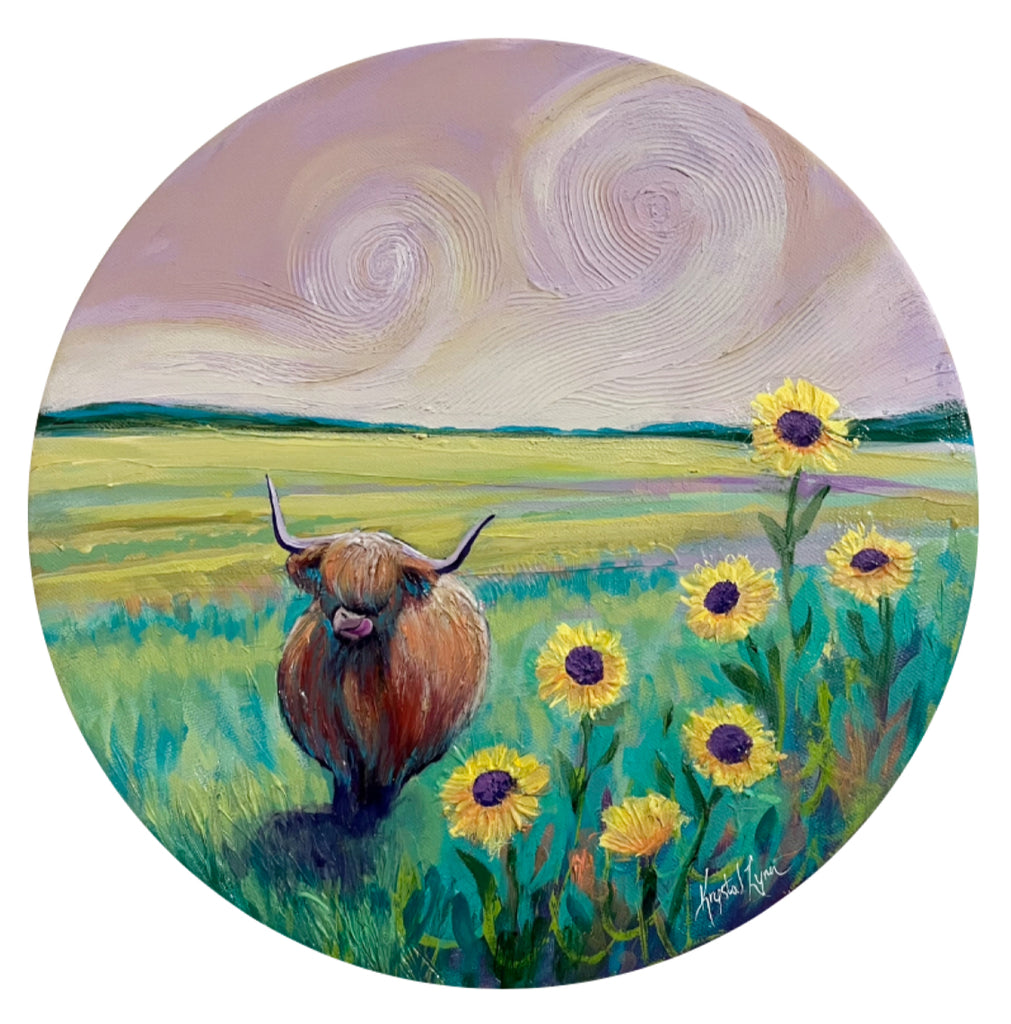 12 inch original one of a kind painting on a circle canvas. Created using professional high quality acrylic paint and varnished with UV protection. Wire hanger installed so it’s ready to hang on your wall. Comes with Certificate of Authenticity.