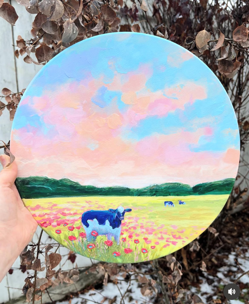 12 inch original one of a kind painting on a circle canvas. Created using professional high quality acrylic paint and varnished with UV protection. Wire hanger installed so it’s ready to hang on your wall. Comes with Certificate of Authenticity.